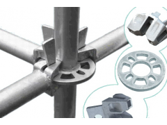 厂家盘扣式脚手架产品既能省材料遗落或整理的麻烦,横杆、斜杆均为插销式的连接方式,杆件与立杆均可确保连结的牢固度,接头依管的圆弧制造,与立杆的钢管整面接触,然后敲紧插销,之后为三点一起受力可确保牢牢固定,增加其结构的强度并传递水平力,采用满焊来固定横杆头与钢管身,以铆钉将斜杆头与钢管身固定的斜杆头为可转动接头,立杆以四方管连接棒为主的连接方式,在立杆上已把连接棒固定,就不需要用其它接头的组件再组合了;